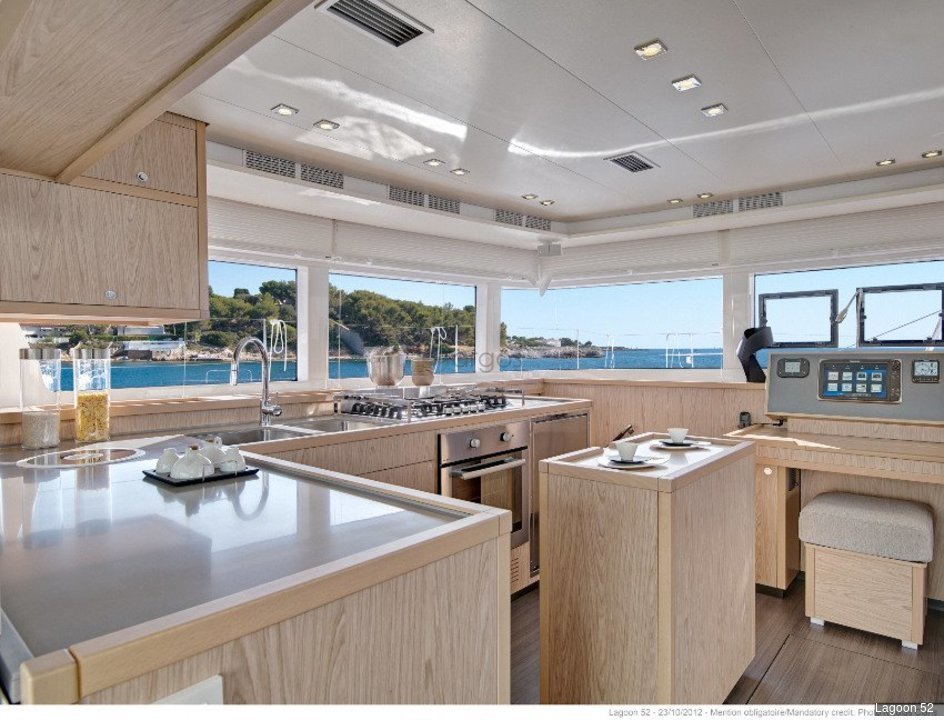 Das markante Merkmal der neuen Lagoon 52 und der kleinen Schwester Lagoon 39 ist das ungewöhnliche Riggkonzept. Durch den zurückgesetzten Mast wird das Großsegel schlanker. Das Vorsegel wird hingegen größer, vielseitiger in der Handhabung und ist durch eine Selbstwende-Einrichtung einfach zu handhaben.